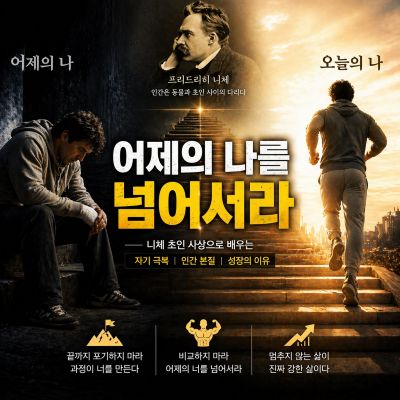 저는 오랫동안 부족하다는 감각을 지우지 못했습니다. 시력은 늘 불편했고, 동생들까지 챙겨야 했던 집안 형편은 선택지를 좁혔습니다. 공무원이 된 뒤에도 "이 정도면 됐다"고 생각하면 안 될 것 같은 불안이 항상 어디선가 저를 짓눌렀습니다. 그런데 니체는 그 불안 자체가 인간의 본질이라고 말합니다. 완성된 존재가 아니기 때문에 부족하다고 느끼는 것이고, 그 감각이 오히려 살아 있다는 증거라는 것입니다.