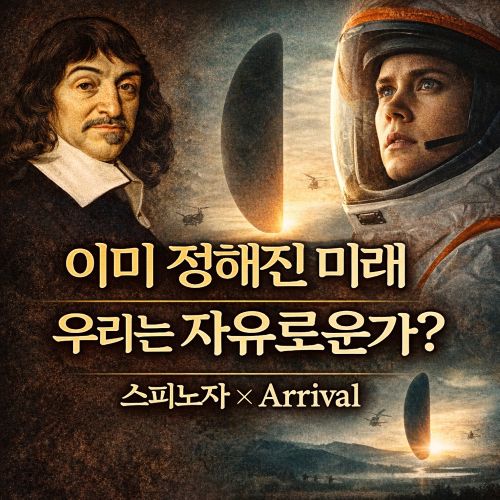 정리하면, 우리는 미래를 모두 알 수는 없습니다. 하지만 세계가 언제나 어떤 질서 속에서 움직인다는 것, 그리고 그 질서를 이해하려 노력할 때 우리는 조금 더 자유로워진다는 것은 분명합니다. 스피노자가 안경알을 깎으며 고독하게 살았던 것처럼, 때로는 통제할 수 없는 조건을 받아들이고 현재에 충실하는 것이 진정한 자유입니다. 저 역시 늦었지만 지금이라도 자녀의 선택을 존중하고, 제가 통제할 수 없는 부분을 인정하는 것에서 자유를 찾고 있습니다. 《Arrival》이 묻는 것처럼, 슬픔을 알면서도 사랑할 수 있는가? 스피노자는 답합니다. 이해한 뒤의 선택이라면, 그것이 곧 자유라고.